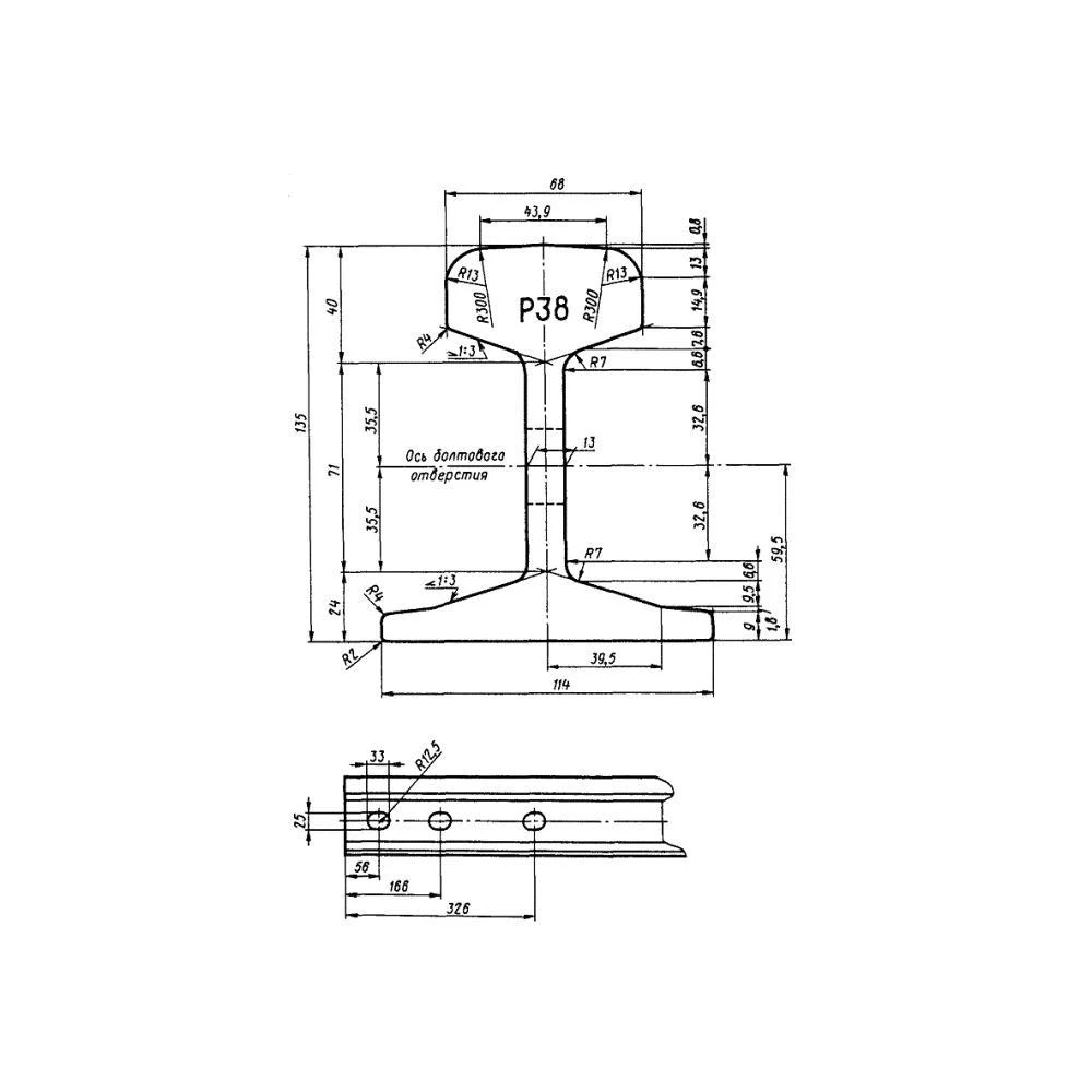 Мы продаем железнодорожный рельс Р38, отгружая со своего склада в Тамбове продукцию, отвечающую всем действующим нормативам. Согласно ГОСТ 30165-94 и ДСТУ 2539-94, габаритные размеры данного металлопроката составляют 135 мм. в высоту и 114 мм. в ширину (ширина основания). Толщина головки при этом составляет 68 мм., толщина шейки – 13 мм. Рельсы Р38 отгружаются заказчикам в зависимости от приобретаемого тоннажа: при мерной длине в 12,5 метров масса одной рельсы составляет около 481 кг. При необходимости мы готовы поставить заказчику прокат немерной длины – отрезками от 4 до 12 метров.